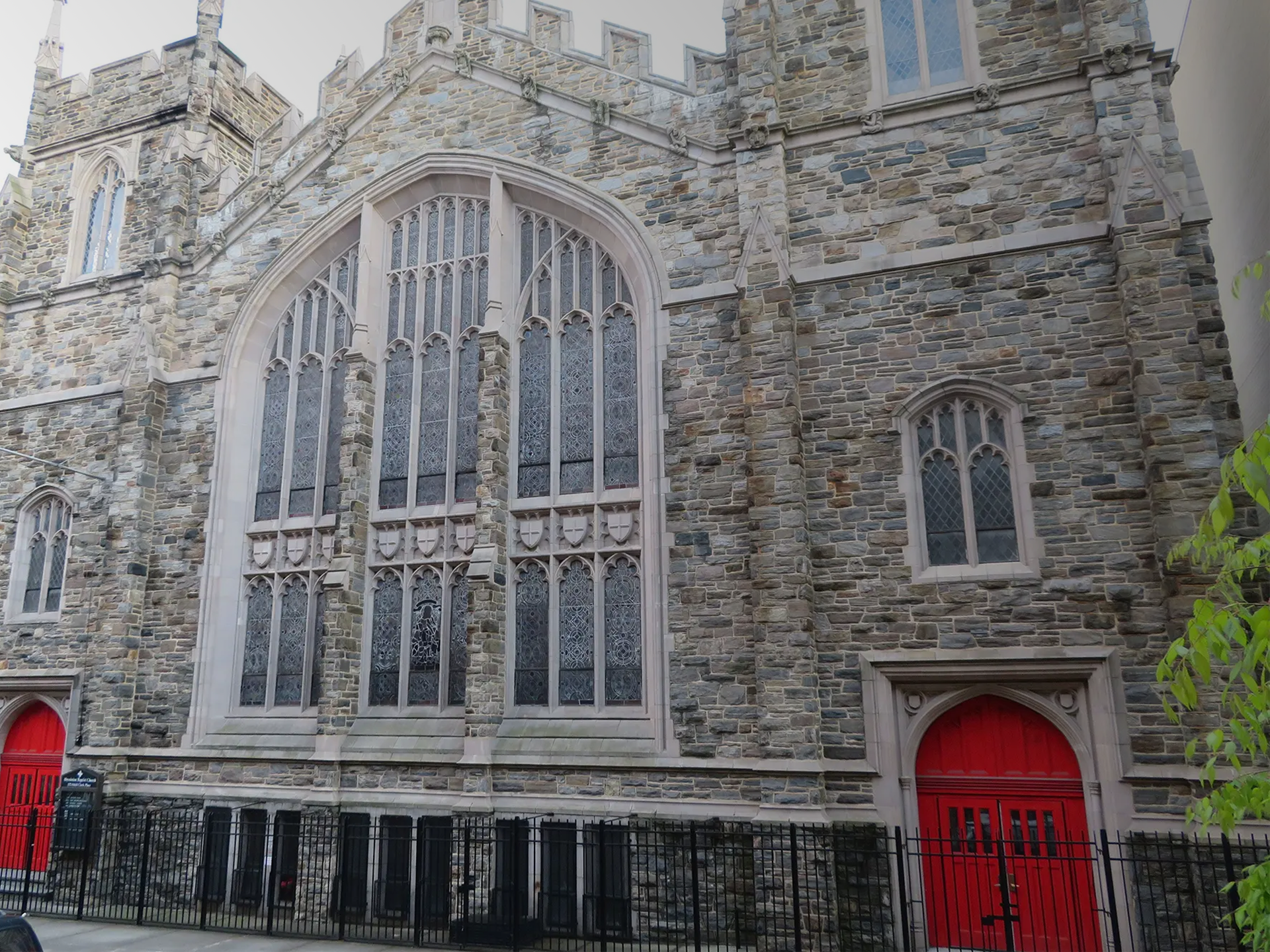 It was built in 1922–23 and was designed by Charles W. Bolton & Son in Gothic Revival and Tudor Revival styles – it has also been described as “Collegiate Gothic”. It features stained glass windows and marble furnishings.